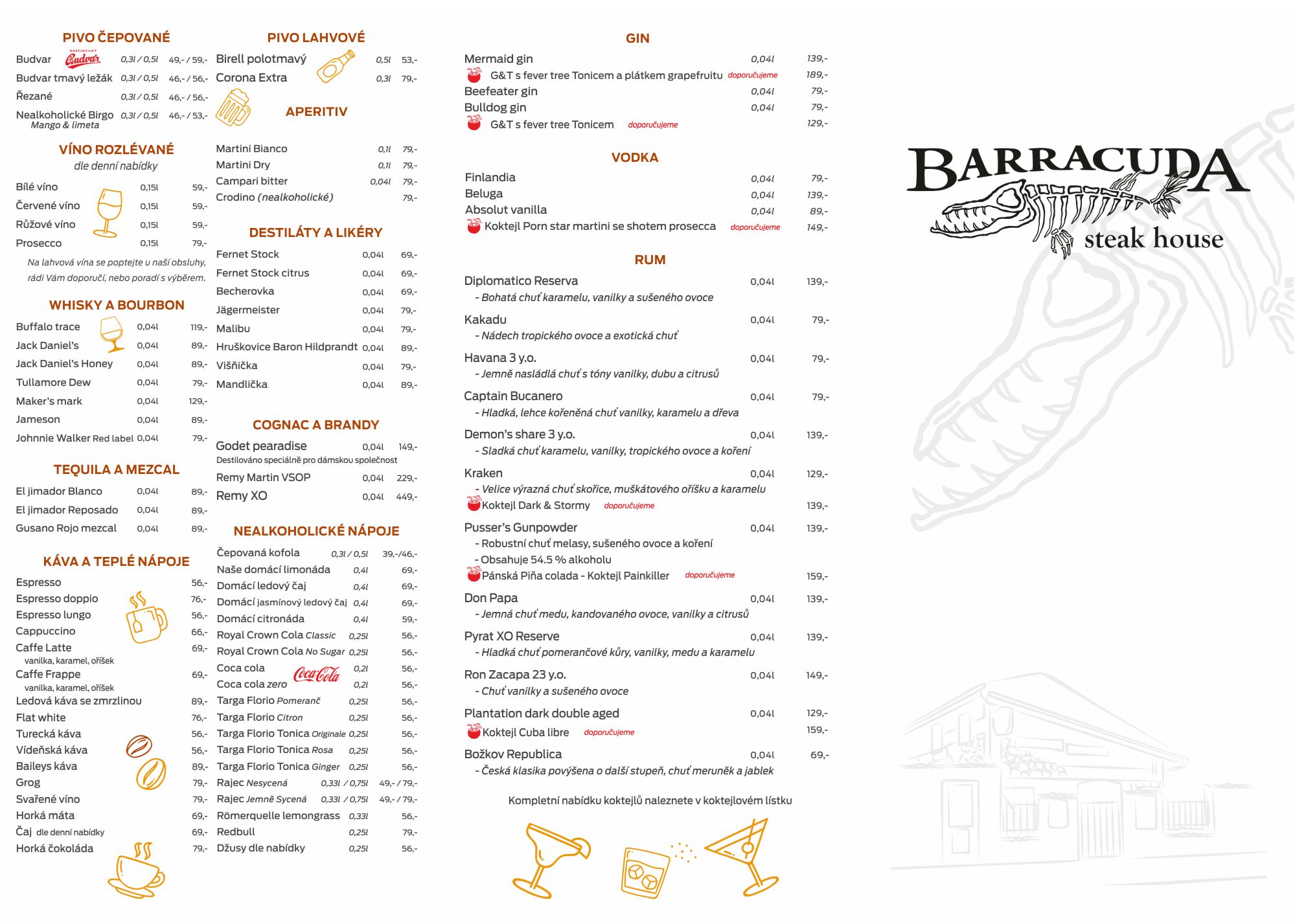 Náš steak house Barracuda dbá především na čerstvost potravin, kvalitní zpracování a dokonalou vyváženou chuť svých pokrmů.Poctivé steaky a nejen ty hovězí pro vaše mlsné jazýčky.